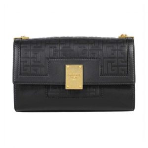 Balmain 1945 Black Leather Embossed Flap Medium Shoulder Bag
