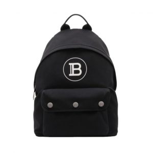 Balmain 1945 Nylon Monogram Flap Crossbody Shoulder Bag Black Small