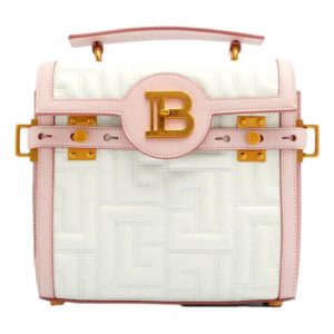 Balmain B-Buzz 23 Pink White Tote Crossbody Shoulder Bag Quilted Leather