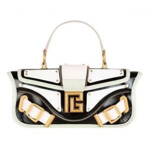 Balmain Blaze Mint Green Leather Baguette Top Handle Crossbody Bag