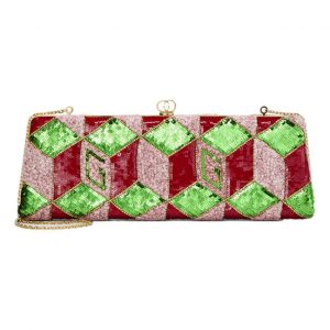 Gucci Broadway Embellished Sequins and Crystals Red Green Pink Chain Shoulder Bag Clutch