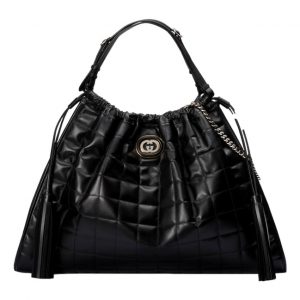 Gucci Deco Fringe Large Leather Tote Bag Black