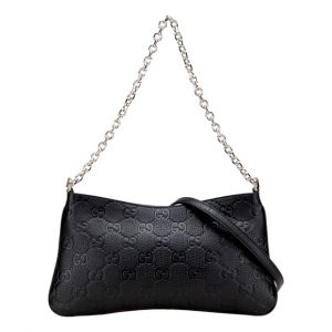 Gucci GG Emblem Black Leather Shoulder Bag Chain Strap