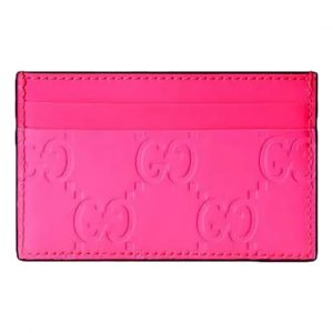 Gucci GG Leather Rubber Effect Neon Pink Card Holder Wallet