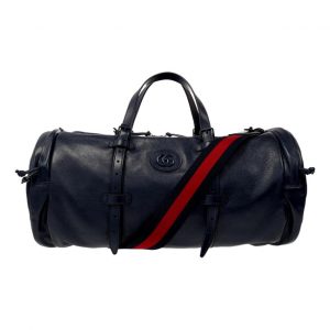 Gucci GG Logo Deep Blue Buffalo Leather Duffle Tote with Strap
