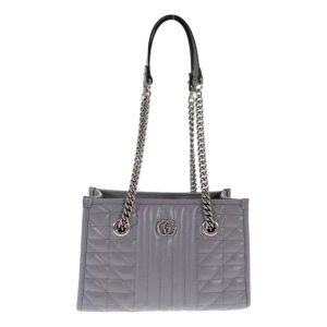 Gucci GG Marmont Silver Medium Chain Shoulder Tote Bag Gray Leather