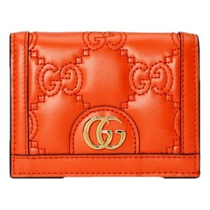 Gucci GG Quilted Matelassé Leather Card Case Wallet In Orange