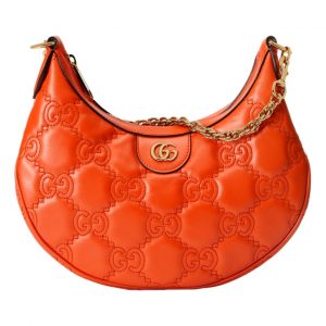 Gucci GG Quilted Matelassé Leather Small Shoulder Handbag In Orange