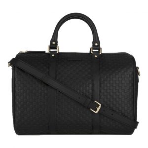 Gucci Microguccissima GG Black Leather Embossed Boston Bag