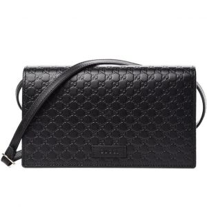 Gucci Microguccissima GG Logo Black Leather Wallet Crossbody Handbag