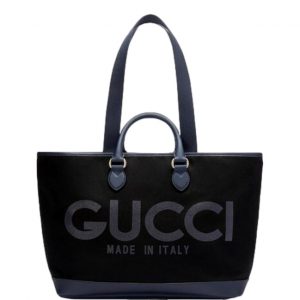 Gucci Made in Italy Large Supreme Canvas Leather Black Navy Tote Bag