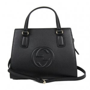 Gucci Soho Leather Structured Small Tote Crossbody Bag Black