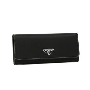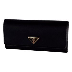 Prada Tessuto Nero Black Continental Flap Black Wallet Silver Triangle Logo