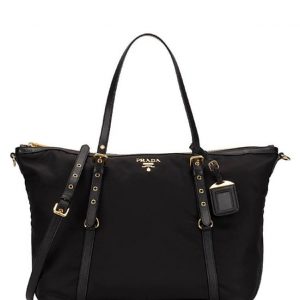 Prada Tessuto Nylon Saffiano Leather Black Top Zip Tote Bag
