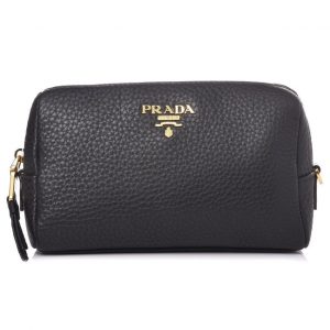 Prada Vitello Daino Black Leather Cosmetic Pouch