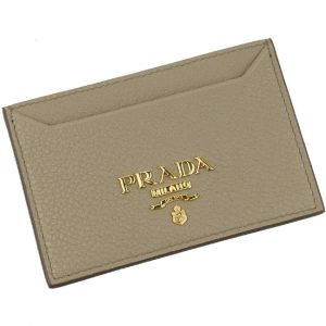 Prada Vitello Grain Argilla Grey Leather Small Card Holder Wallet