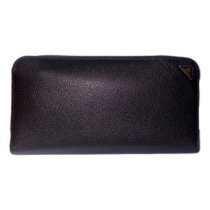 Prada Vitello Micro Grain Long Black Zip Around Continental Wallet Triangle Logo