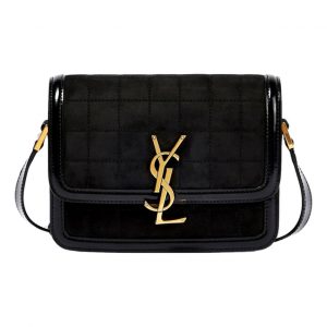 Saint Laurent Solferino Leather Black Quilted Suede Shoulder Bag