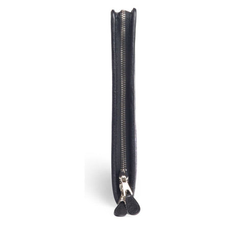 This chic and unique Balenciaga pouch is constructed of distressed black leather. This pouch features silver hardware. The top zipper opens to a black fabric interior with a patch pocket. This edgy clutch is perfect for parties and special events, with the fashion forward style of Balenciaga!