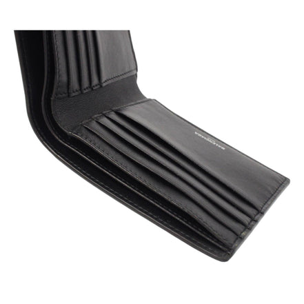 This bifold wallet is crafted of smooth black calfskin leather with a perforated Balenciaga logo on the front face. The interior is made with the same black calfskin leather and features card slots and bill slots. The clean design and functionality of this wallet make it perfect for everyday use!