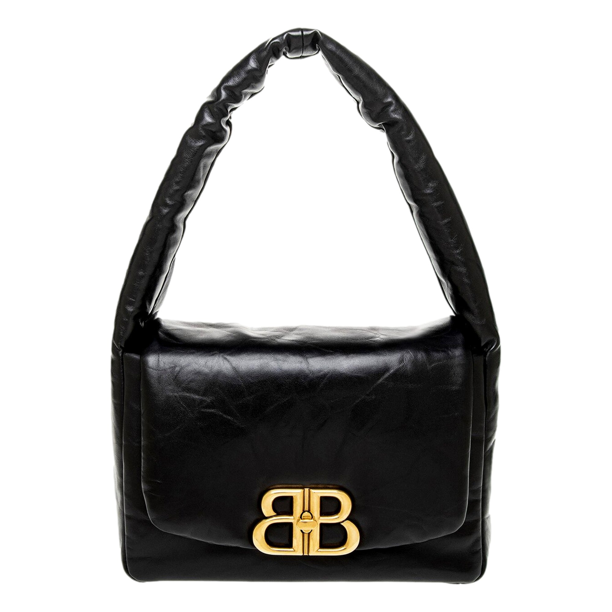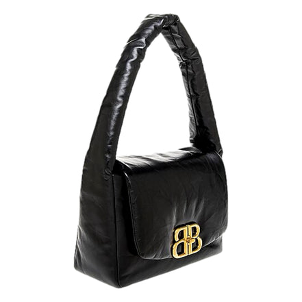 The Balenciaga Monaco arrives as a softer, more relaxed counterpart to the house signature structured silhouettes, and it wears that ease exceptionally well. The supple black nappa leather has a refined drape that deepens with wear, while the oversized gold-tone BB logo twist lock commands attention without effort. At a generous 10 inches wide, it carries everything you need through a full day while maintaining the kind of streamlined profile that keeps the overall look polished. The padded fixed shoulder strap adds a considered comfort element that feels intentional rather than casual, making this one of the more wearable pieces in the current Balenciaga lineup.