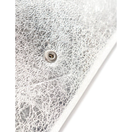 Balenciagas Papier envelope wallet turns heads in bright metallic silver crinkled leather inside and out. The gold debossed logo on the front keeps it grounded in iconic territory.