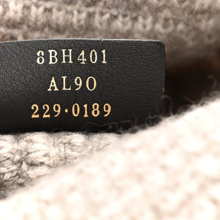 Introducing the Fendi Cashmere FF Large Shopper Tote in a classic tortora gray. This tote is finely crafted of signature monogram Fendi FF cashmere. The knitted tote bag features light gray cashmere strap top handles and opens to a beige interior. Fashion-forward and functional, the durable construction of this tote makes it perfect for everyday wear.