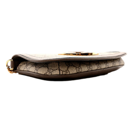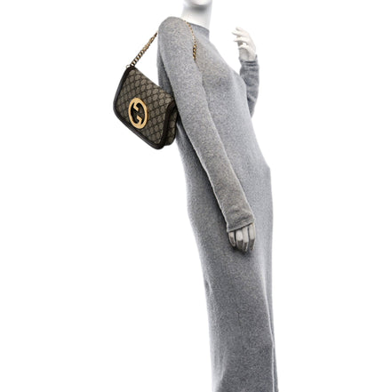 Iconic and instantly recognizable, this Gucci Blondie Shoulder Bag is crafted in signature GG Supreme canvas with rich beige and ebony tones and smooth leather trim. The design is highlighted by the oversized round Interlocking G emblem in gold-tone hardware and a statement chain shoulder strap that delivers bold heritage styling.