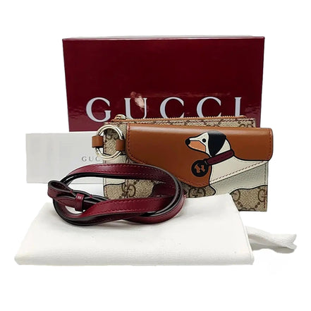 Gucci Dachshund GG Supreme Canvas Leather Brown Double Wallet Lanyard