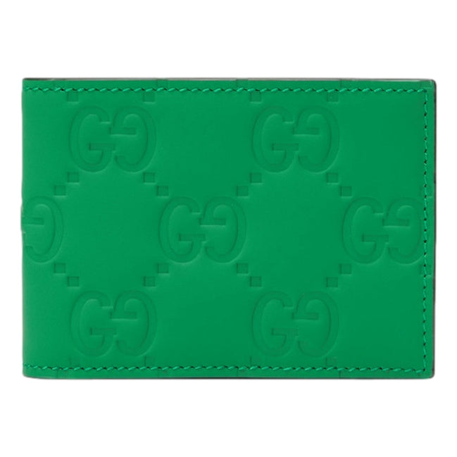 Gucci GG Leather Green Rubber Effect Bifold Wallet