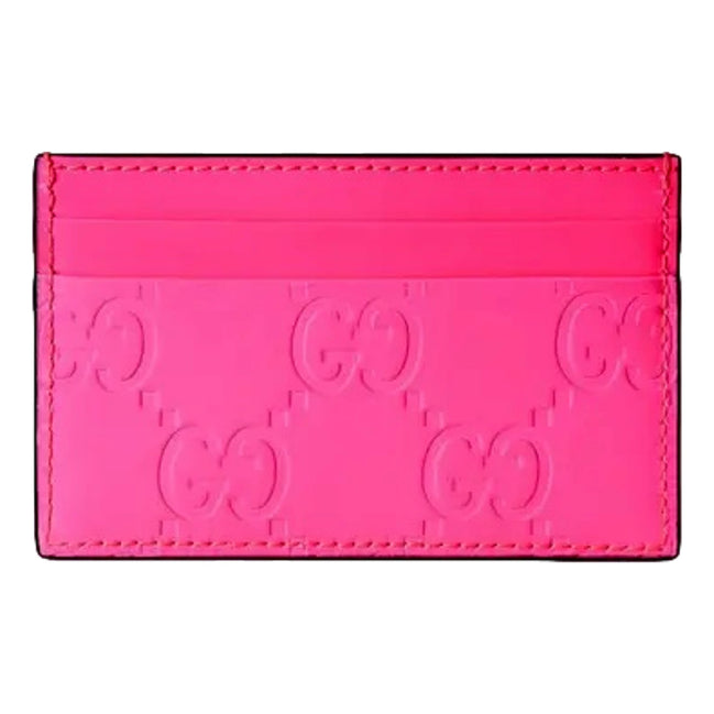 Turn everyday essentials into a statement piece with this Gucci GG Neon Pink Rubber Effect Leather Card Holder Wallet. Crafted in Italy from premium leather with Gucci’s iconic embossed GG monogram, this vibrant wallet blends luxury craftsmanship with bold modern style. The rubber-effect finish creates a smooth, glossy appearance that instantly stands out while remaining sleek and lightweight for daily use.