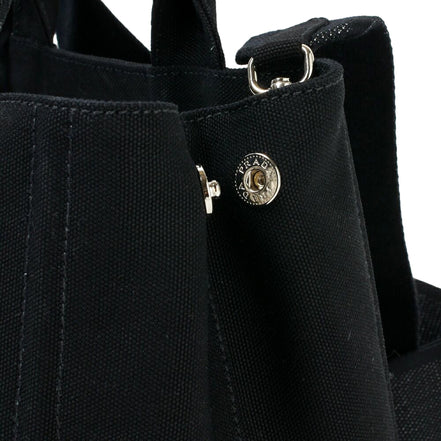 The Prada Canapa Black Canvas Embossed Logo Tote is a chic and versatile accessory that perfectly combines functionality with understated luxury. Crafted from durable black canvas, this tote features the iconic embossed Prada logo, adding a touch of sophistication to its minimalist design.