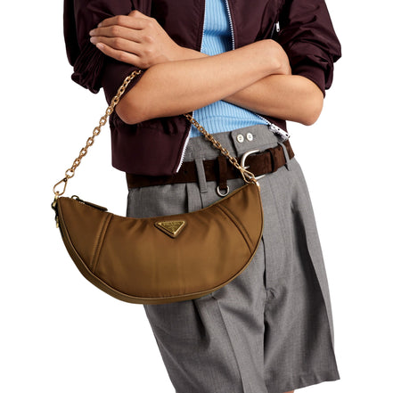 Prada Demi Lune Re-Nylon Crescent Shoulder Bag Brown