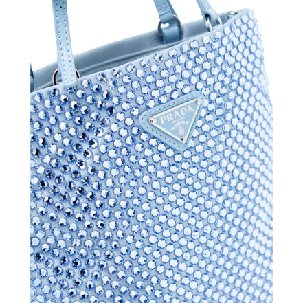 Prada Mini Satin Crystal Embellished Double Handle Crossbody Handbag Light Blue