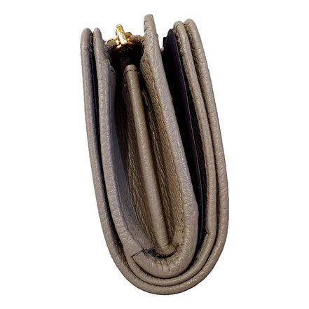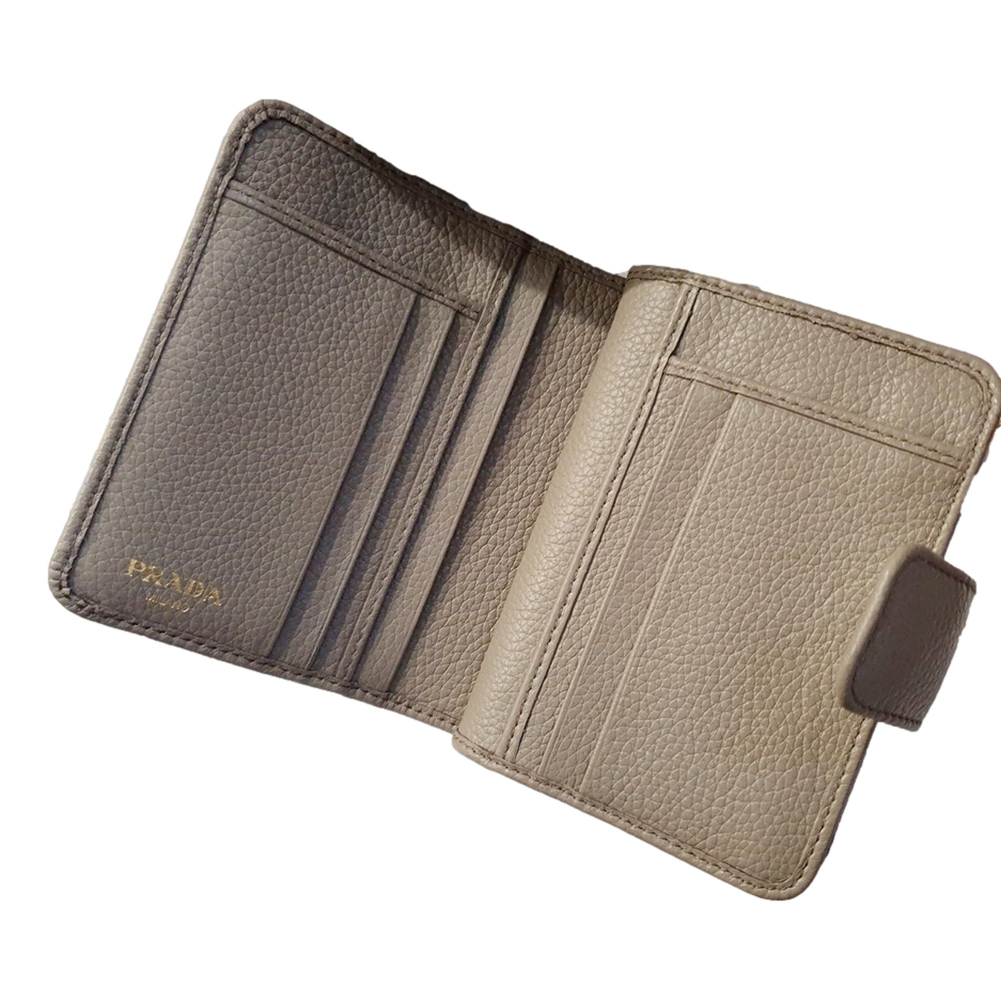 The Prada Vitello Grain Leather Wallet with Zipper in Argilla Grey is a sophisticated accessory that perfectly combines style and functionality. Crafted from premium Vitello Grain leather, this wallet features a neutral grey tone that adds a touch of understated elegance to any ensemble.