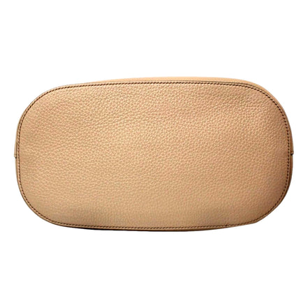 This beautiful Prada bucket bag is the perfect everyday bag. The two large inside pockets along with the top zipper over the large main compartment have all the space you need to carry all of your items securely through the day. The gorgeous pebbled leather is the perfect neutral to go with anything and everything you have in your closet all year long. The web strap gives an extra unique touch to this classic bag to add an additional flare to your everyday style. This is the bag for anyone looking to add designer luxury to their wardrobe.