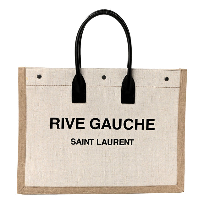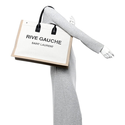 Saint Laurent Rive Gauche Canvas Leather Top Handles Large Tote Bag Beige