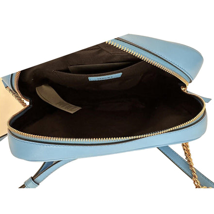 Ensure you are in style with the Versace La Medusa Blue Quilted Leather Crossbody Bag. The bag features a Medusa plaque on the front face along with an exterior slip pocket. The zipper opens to a spacious canvas lined interior with an additional slip pocket. The blue pop of color makes this crossbody bag perfect for a girls night out or social gathering!
