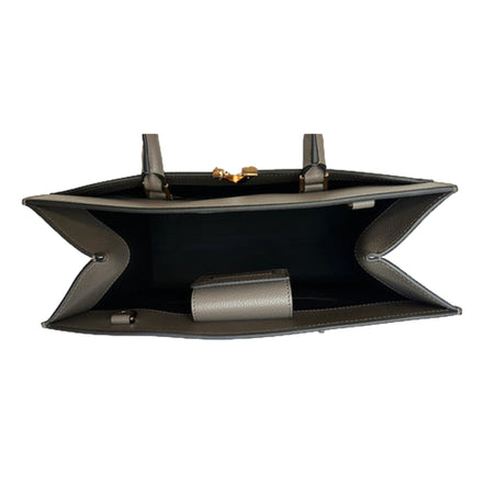 Versace Virtus Medium Top Handle Tote Taupe Grey Calfskin Leather Handbag
